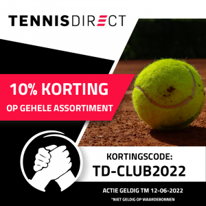 Een van onze fijne sponsoren TennisDirect heeft een aantrekkelijke kortingsactie. Dus mocht je nog nieuwe spullen nodig hebben. Check dan de site en gebruik de kortingscode TD-CLUB2022. Van toepassing op HET HELE ASSORTIMENT!