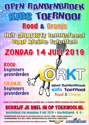 Op zondag 14 juli wordt er voor de jongste jeugd, de rood en oranje spelers, een open toernooi op LTV Randenbroek georganiseerd. Vind je het leuk om op een hele leuke feestelijke dag een aantal wedstrijdjes te spelen? En leuke dingen te doen op ons tennispark? Schrijf je dan gauw in via deze link.